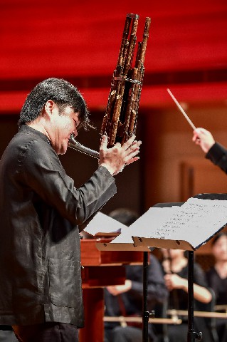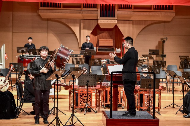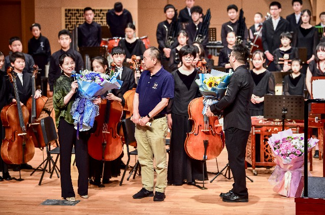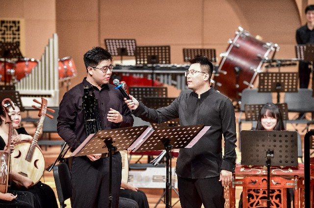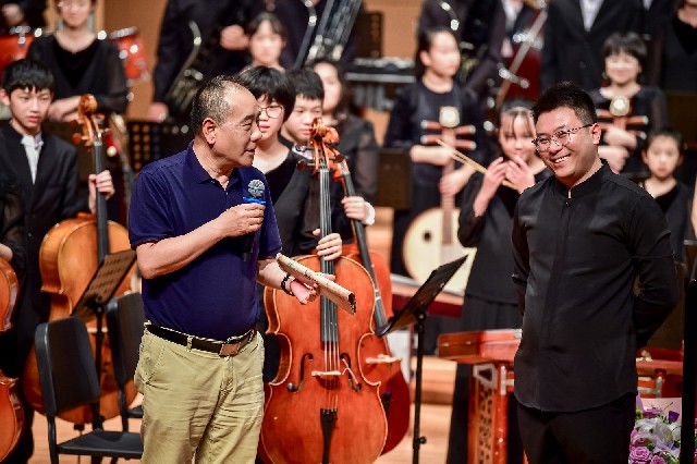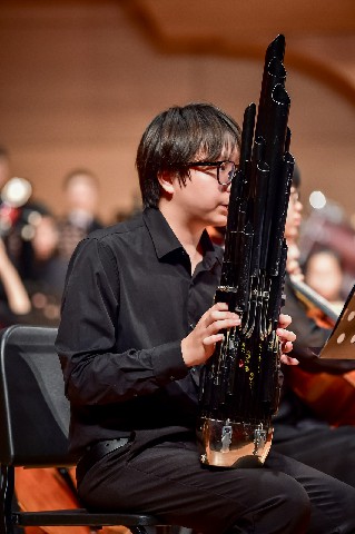 音乐会中,来自中国音乐学院王洋老师,星海音乐学院刘宇腾,青年演奏家张成,北京回民中学金帆民乐团陈默,携手金融街少年宫金声国乐团志乐团、青年社,中国音乐学院附中李泓萱,共同完成了兰添老师原创的四首笙协奏曲《如是华年》《芙蓉花开》《江行》《风中的故事》,据悉,该四首作品近年来纷纷在各大院团上演并出版收录,音乐会在兰添老师指棒中达到高潮结束。