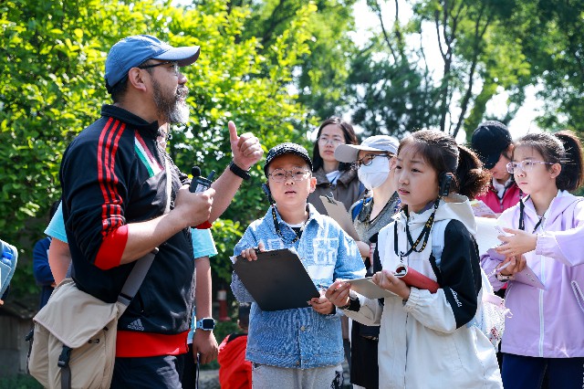 来源: 时间:2026-03-18 10:50:35 点击:17次5月10日,金融街少年宫的“走河”水文化系列活动第四站来到了前门三里河公园。蜿蜒的水道穿行于青砖灰瓦的街巷之间,两只优雅的黑天鹅在水面悠然游弋,岸边菖蒲丛生,芦苇随风摇曳,完美诠释了“水穿街巷,庭院人家”的传统意境。